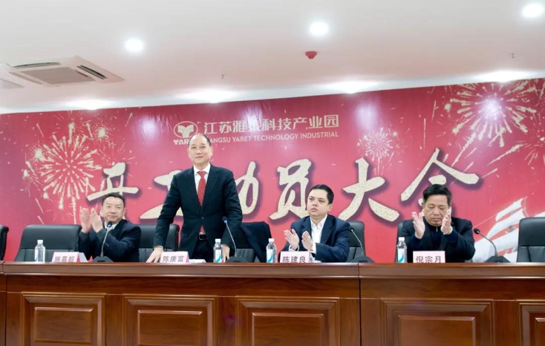 一元復(fù)始,萬象更新。2019年2月15日上午8時30分,集團與江蘇雅泰科技產(chǎn)業(yè)園分別在上海與宿遷兩地順利召開了新春開工動員大會,董事長陳康富攜集團公司總裁班子成員向參會的各部門各車間員工拜年,向大家送去新春祝福和美好祝愿。