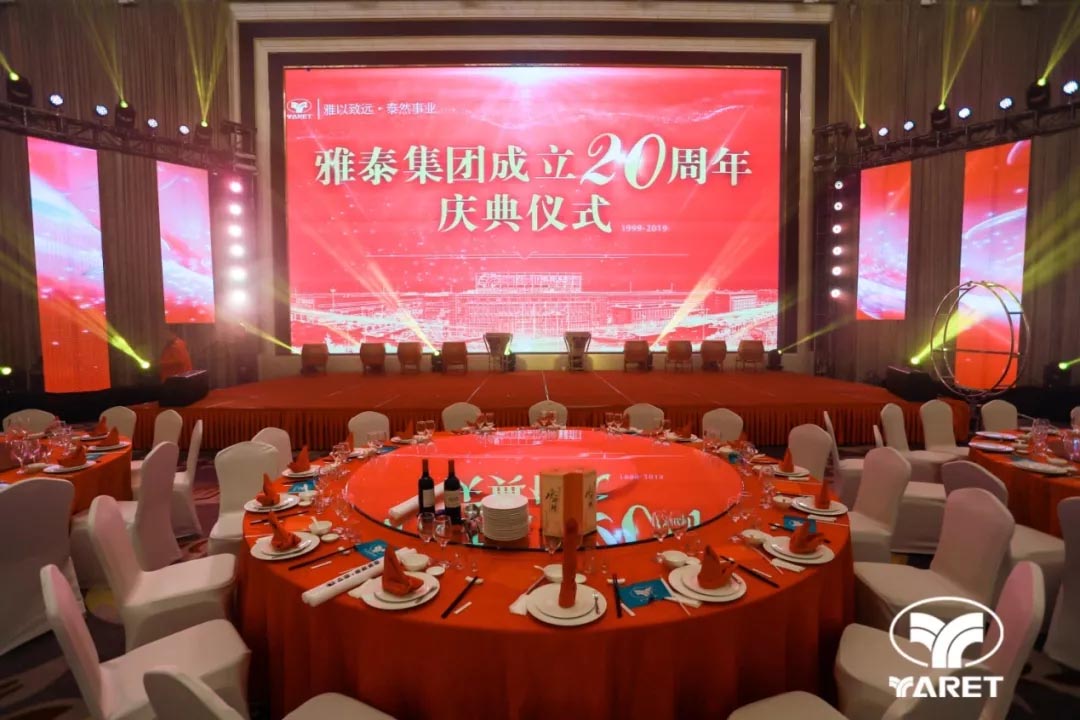 2019年12月18日17時18分,雅泰集團二十周年慶典儀式及晚宴于江蘇省宿遷市恒力國際大酒店隆重舉行,千余人歡聚一堂,共同祝福雅泰二十歲生日快樂!