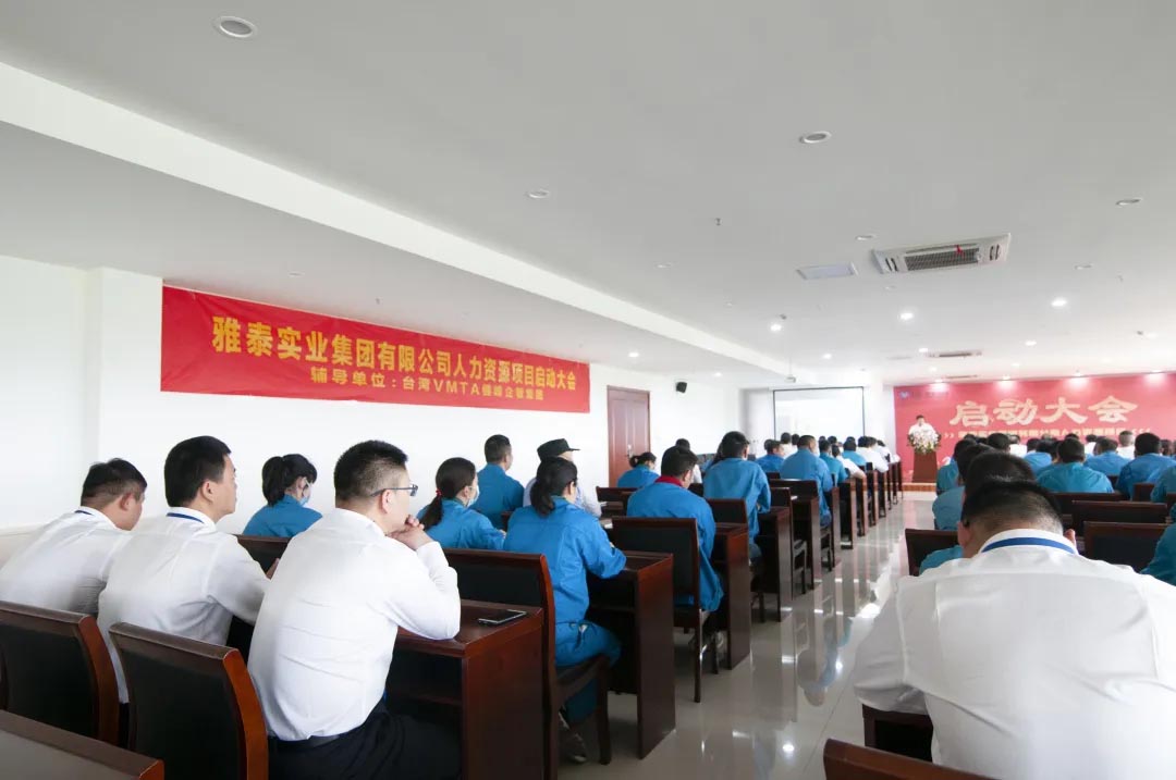 為提升企業整體管理水平,創造更為優質的人才環境,5月21日上午,集團特邀臺灣VMTA健峰企管集團導入人力資源輔導項目,在江蘇雅泰召開雅泰實業集團人力資源輔導項目啟動大會。