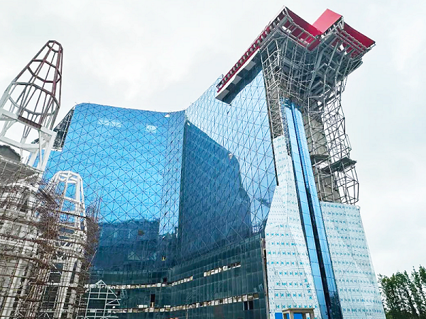 雅泰集團(tuán)承建上海臨港冰雪北區(qū)幕墻整體制作及建設(shè),本項(xiàng)目為菠蘿面異形設(shè)計(jì),充滿現(xiàn)代感的外立面,把冰雪世界的晶瑩閃耀充分展現(xiàn)。與之相匹配的鋁幕墻板的結(jié)構(gòu)復(fù)雜,加工難度較大,全異型、超大、超寬、超長鋁板,多數(shù)板長6-7米,且角度尖銳精度要求非常嚴(yán)格。面對高難度重點(diǎn)工程,雅泰集團(tuán)快速成立項(xiàng)目攻艱突擊隊(duì),選調(diào)管理、設(shè)計(jì)、加工精英,結(jié)合理解冰雪項(xiàng)目設(shè)計(jì)特點(diǎn),最大程度達(dá)成設(shè)計(jì)師初衷。加工團(tuán)隊(duì)對異型板件進(jìn)行優(yōu)化拆解,分件加工,再進(jìn)行一體化工廠組裝集成。同時(shí)集團(tuán)擁有行業(yè)內(nèi)體量、規(guī)模均在前列,全長700米的進(jìn)口先進(jìn)噴涂設(shè)備,充分滿足超大、超長、超寬鋁板的氟碳漆面噴涂完成。
