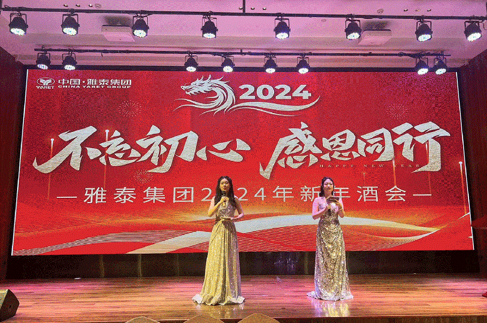 2月3日晚,客戶代表、入駐雅泰企業港的業主、股東及家屬、退休老員工代表與總部及各子公司的主管、優秀員工一起,參加了2024年雅泰集團新春晚會。晚會上集團領導為2023年度的優秀員工頒獎鼓勵!
