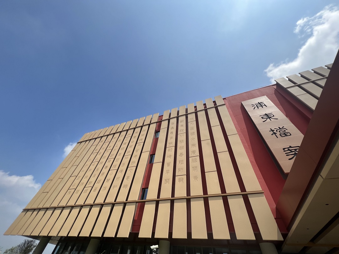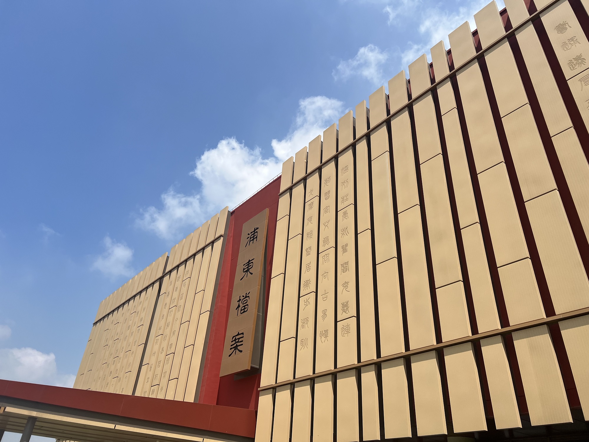 當(dāng)走近位于百潤路100號(hào)的上海浦東新區(qū)檔案館時(shí),瞬間被這座充滿中國文化底蘊(yùn),用一方方紅色印章與一片片原色竹簡,巧妙搭配的建筑深深吸引。
